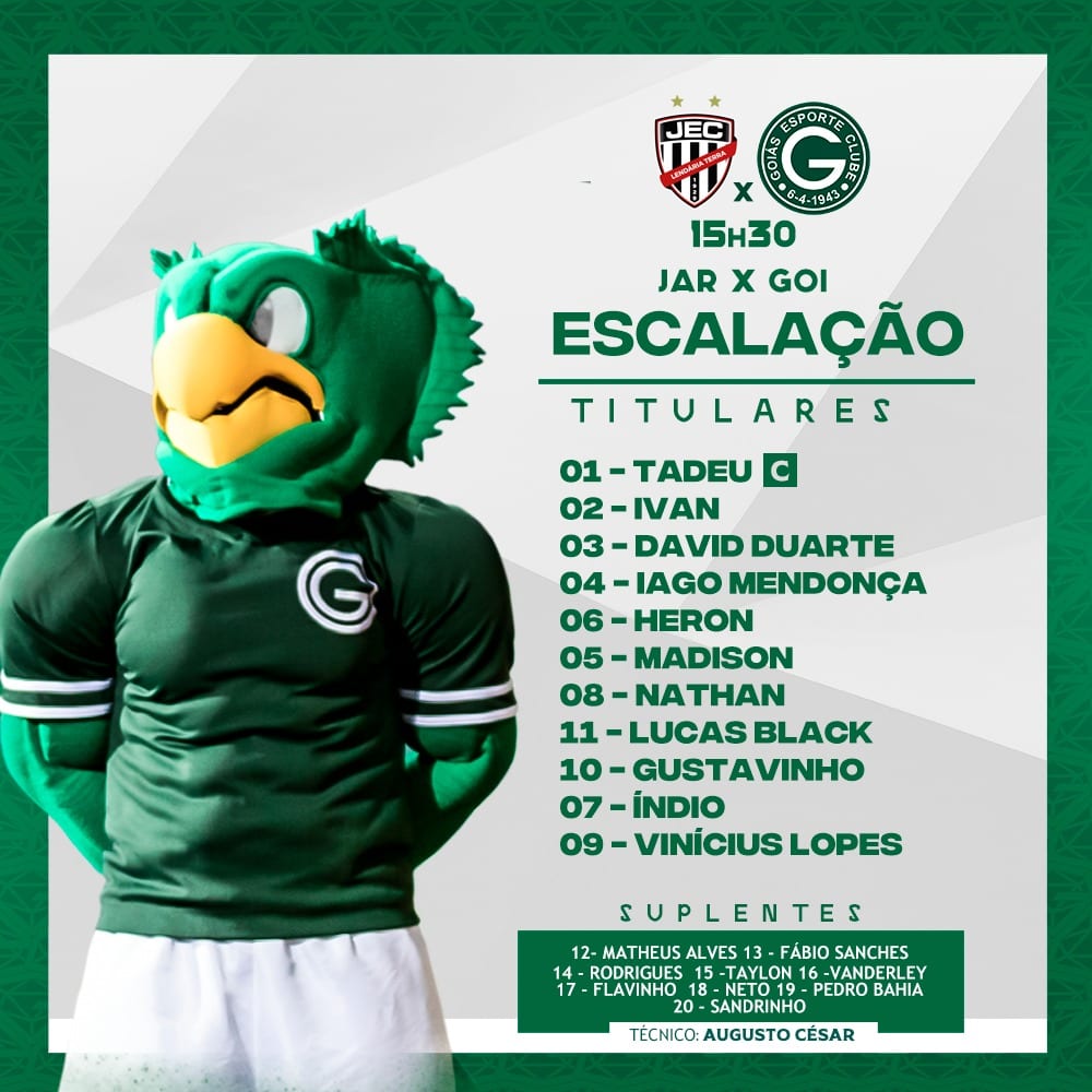 Diante disto, a reportagem mostra como o técnico Augusto César organizou seu time para o jogo desta tarde. Principalmente, os suplentes que estarão à disposição para o confronto desta rodada pelo Goianão.