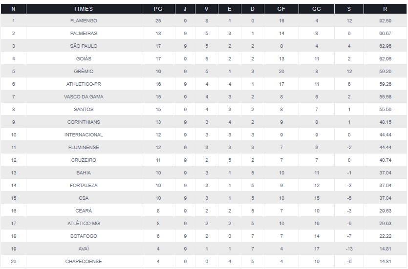 A reportagem do Portal Esmeraldino traz para o leitor a classificação do returno da série A após mais uma rodada.