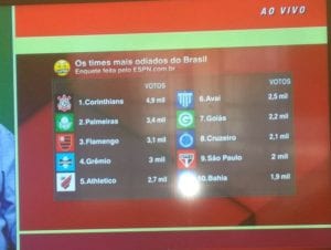 19/12/2018 @ 16:00Goiás fica no TOP 10 dos times mais odiados do Brasil em enquete da ESPN