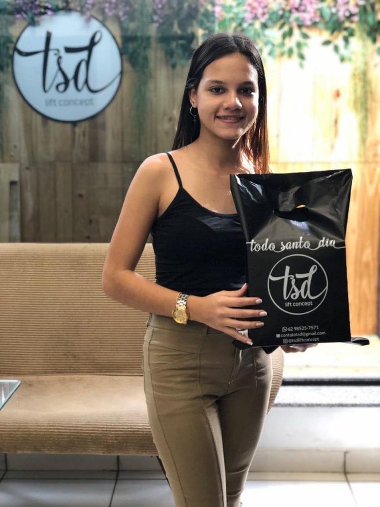 Para concluir nossa promoção com chave de ouro faltava a foto da Ana retirando a Regata:
