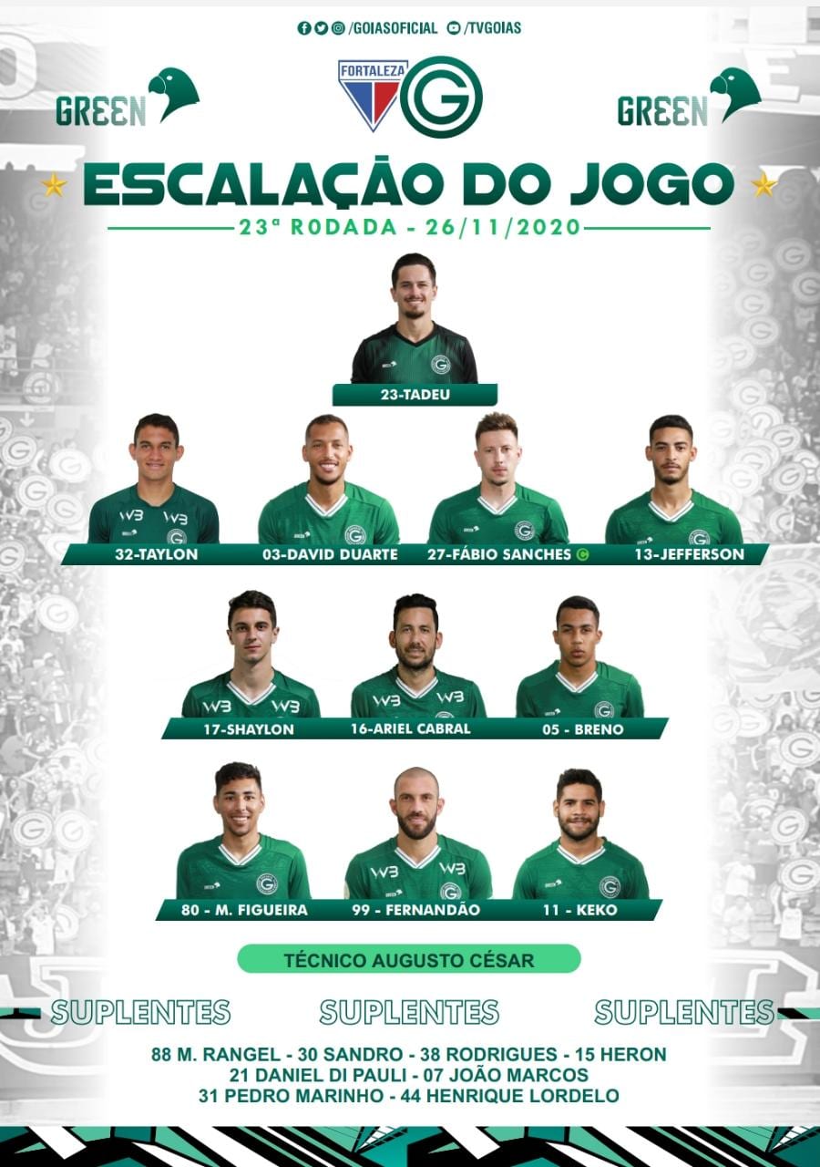 Fortaleza x Goiás: veja a escalação oficial do Verdão