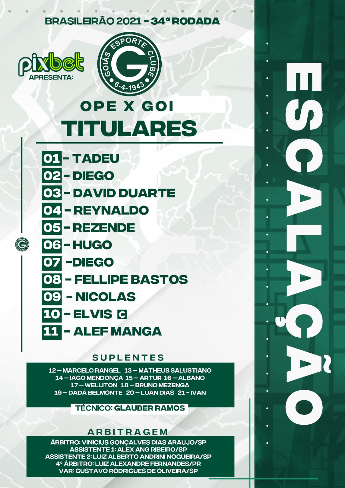 Glauber Ramos divulga escalação oficial do Goiás para decisão contra Operário