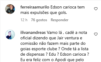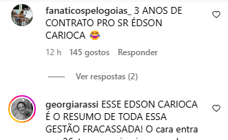 Por isso, logo em comentários nas redes oficiais do clube, o diretor de futebol, Lucas Andrino foi cobrado por ter feito um contrato de 3 anos com Édson Carioca.