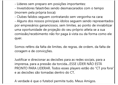 Treinador foi desligado quando o time ainda estava no G4, de forma aparente, não pegou bem com ele e seu empresário Fábio Mello que postou um longo desabafo sobre o momento do futebol brasileiro e as decisões tomadas.