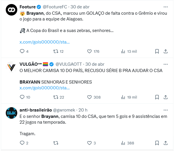 Porém, junto com o CSA o jogador se destacou jogando contra o Grêmio, virou alvo de muitos comentários e chamou atenção de mais times, podendo dar trabalho para Lucas Andrino concluir a negociação.