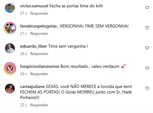 O Goiás conseguiu perder o título da Copa Verde para o Paysandu nos pênaltis e a torcida se revoltou nos comentários no instagram do clube, com comentários pesados inclusive pedindo para que o clube feche.