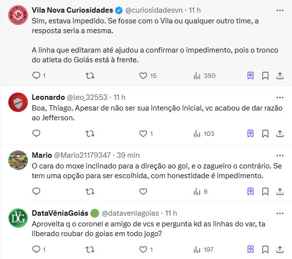 O jornalista Thiago Menezes postou que não estava impedido, porém, prontamente foi rebatido por torcedores rivais e também torcedores do esmeraldino.