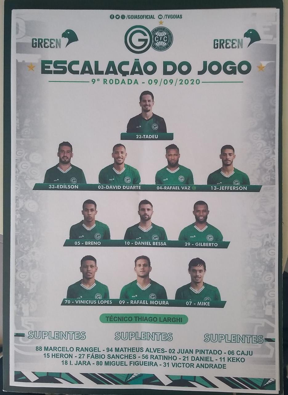 Goiás está escalado para o jogo contra o Coritiba; veja o time