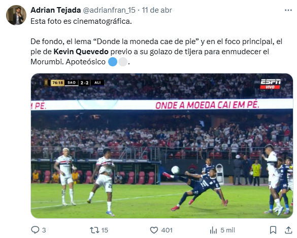 O Goiás contou em 2020 com o atacante Kevin Quevedo, porém, o jogador realizou apenas 2 jogos e voltou para o Peru na pandemia de Covid-12. Agora retornou ao Brasil, mas jogando pelo Alianza Lima contra o São Paulo e marcou um gol chamado de “cinematográfico”.