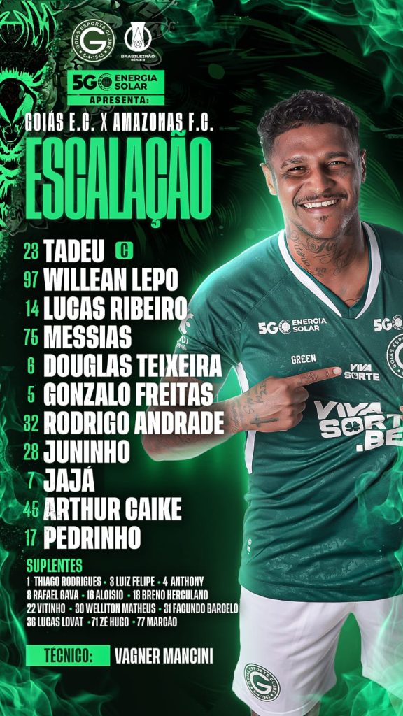 Goiás está escalado de forma oficial para o primeiro jogo da temporada 2025 do Campeonato Brasileiro da Série B buscando o acesso para a elite do futebol brasileiro.