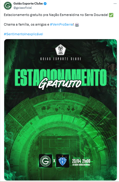 O Goiás realizou uma mudança para a final da Copa Verde, decidiu que o estacionamento do Estádio Serra Dourada seria terceirizado, porém, o clube recuou na decisão e informou que o acesso será gratuito.