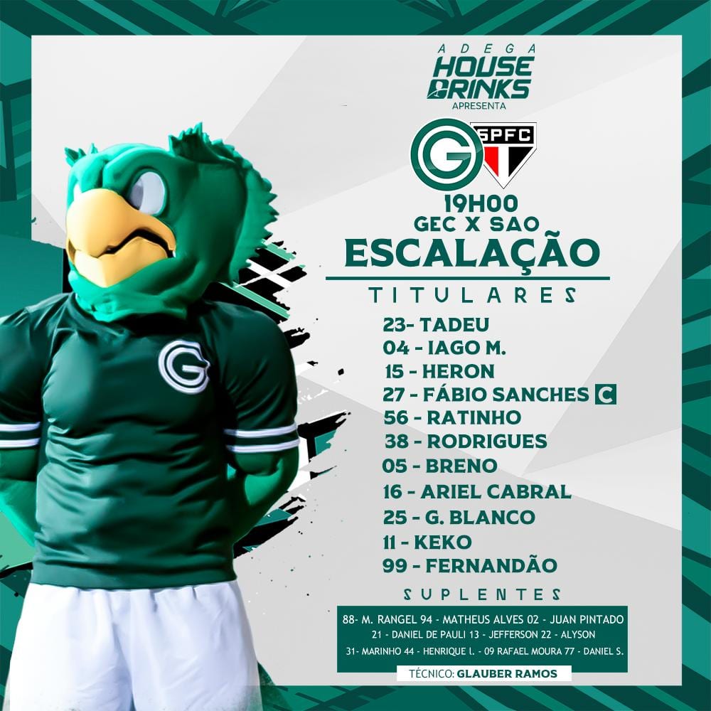 Com isso o Verdão vai a campo com: Tadeu; Iago Mendonça, Fábio Sanches e Heron; Ratinho, Gustavo Blanco, Ariel Cabral, Breno e Rodrigues; Keko e Fernandão.