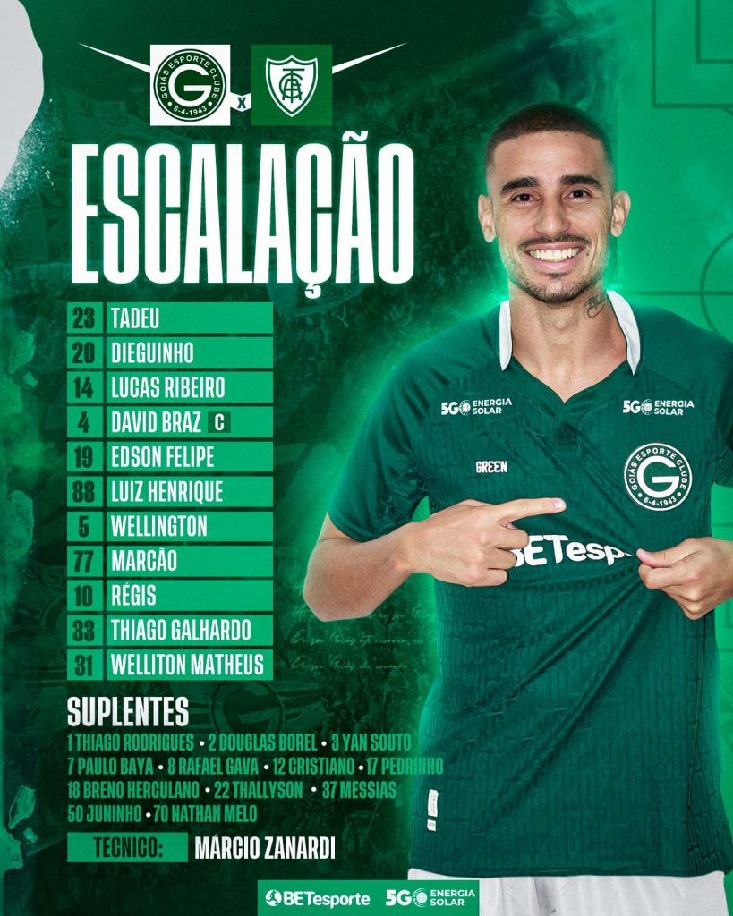 Goiás e América-MG entram em campo logo mais, às 18h30, no Estádio Hailé Pinheiro, em partida válida pela 13ª rodada do Campeonato Brasileiro Série B. Para essa partida, o técnico Márcio Zanardi promoveu três mudanças na formação titular. A primeira delas é o retorno do zagueiro Lucas Ribeiro, que volta de suspensão na vaga de Yan Souto. A segunda é o meia Regis, que começa como titular na vaga de Paulo Baya. Por fim, o volante Wellington ganha a posição de Juninho.