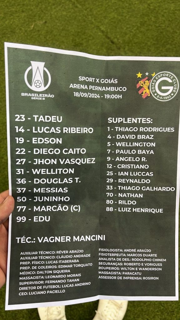 O Goiás Esporte Clube entra em campo logo mais, às 19h, onde irá enfrentar o Sport, na Arena Pernambuco, em partida válida pela 27ª rodada do Campeonato Brasileiro Série B. Para esse jogo, o técnico Vagner Mancini promoveu algumas mudanças na equipe. O jogo desta noite terá transmissão dos canais SporTV e Premiere.