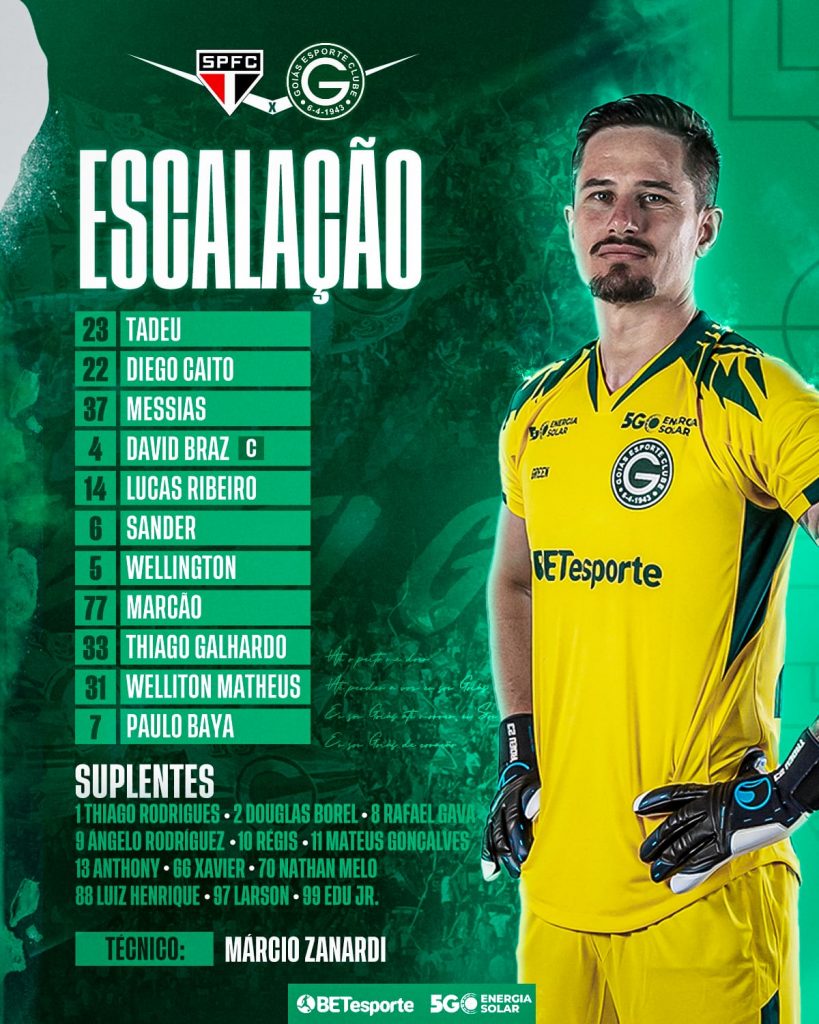 Com mudanças, Goiás está escalado para enfrentar o São Paulo; assista AO VIVO