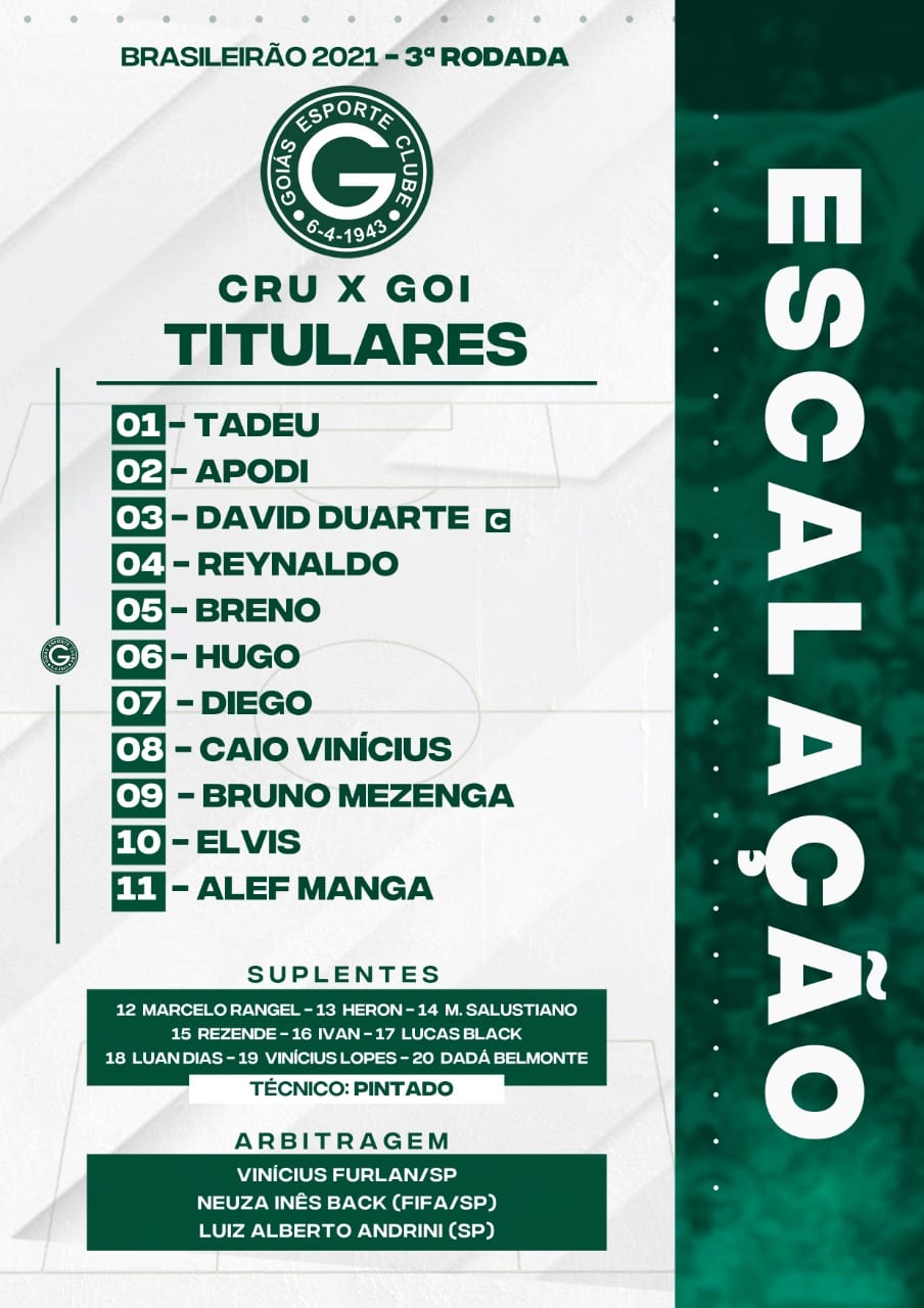 Cruzeiro x Goiás: veja as escalações oficiais dos times: