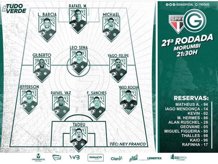 O Goiás entra em campo daqui a pouco as 21:30 para enfrentar o São Paulo em jogo válido pela 21° rodada do Campeonato Brasileiro da Série A.