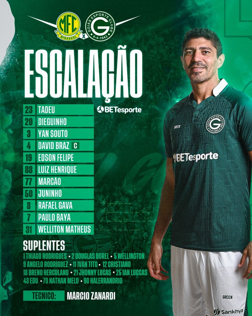 O Goiás Esporte Clube entra em campo logo mais, às 19h, onde enfrenta o Mirassol, no Estádio Campos Maia, em partida válida pela 9ª rodada do Campeonato Brasileiro Série B. Para esse jogo, Yan Souto ganhou a vaga do suspenso Lucas Ribeiro, enquanto que Luiz Henrique segue de titular na ala esquerda. Thiago Galhardo, com desconforto muscular na panturrilha está fora. Quem entra no seu lugar é Rafael Gava.