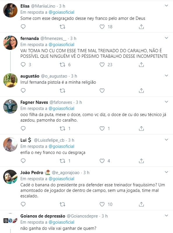 Não foi só nas plataformas digitais do Goiás, mas também outras redes sociais e até mesmo em grupos de Facebook que muitos torcedores ficaram na bronca com o técnico Ney Franco, após o empate no clássico contra o Vila Nova pelo Campeonato Goiano.